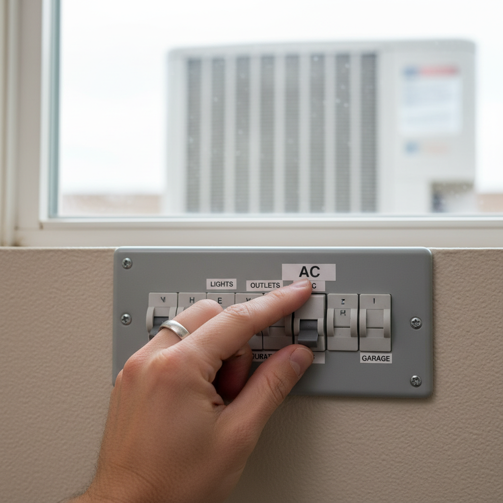 Always start by checking your thermostat settings to ensure it's in cool mode and set below the current room temperature. Next, inspect your home's electrical panel for any tripped circuit breakers related to the AC or furnace.