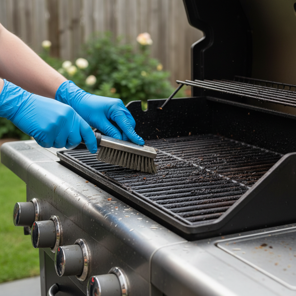 - Remove and Clean Grates: Take out the cooking grates. For tough, baked-on residue, soak them in warm, soapy water. Use a stiff wire brush or a specialized grill brush to scrub away food particles. Rinse thoroughly and dry completely.