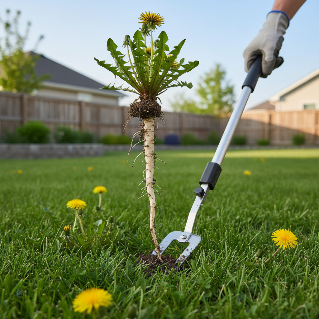 - Technique: Water the lawn thoroughly an hour or two before weeding; moist soil makes extraction much easier. Position the weeder around the base of the plant, push it deep into the soil alongside the taproot, and leverage it to pull the entire root out.