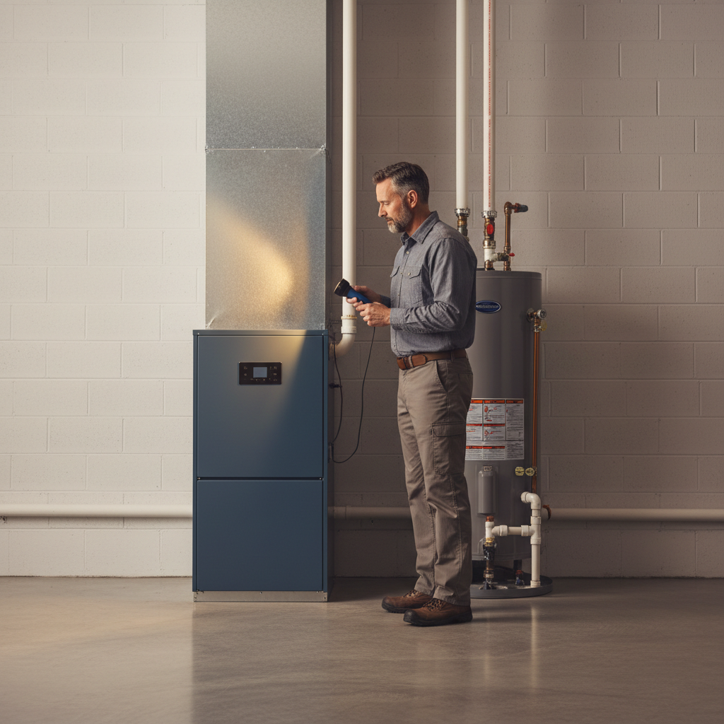- Cracked heat exchanger (you'll smell exhaust gases inside the house — get out and call the gas company AND an HVAC tech)