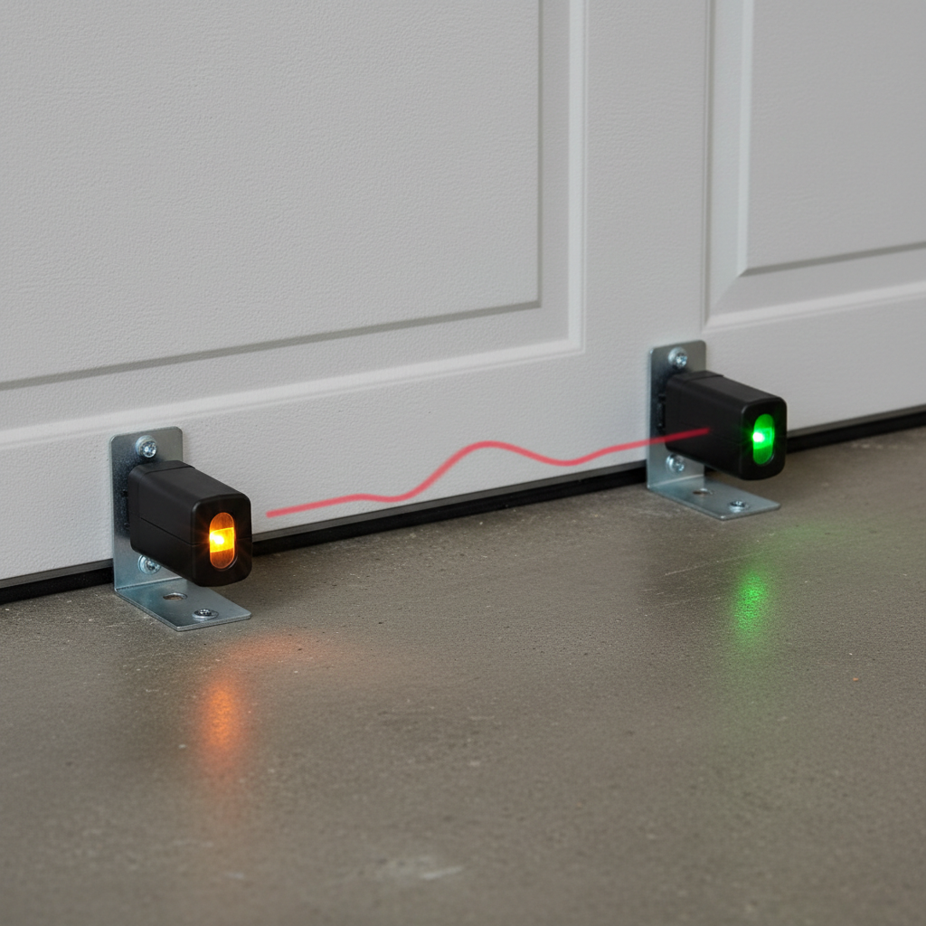 - Inspect sensor alignment and beam: Look for two small boxes, typically 4-6 inches off the ground, on either side of the garage door opening. One will have an amber light, the other a green light (colors may vary by brand). Ensure both lights are solidly lit. If either is off, blinking, or dim, the beam is interrupted or misaligned. Gently nudge each sensor, observing if the light changes. Use a level to ensure they are perfectly straight and pointing directly at each other across the opening.