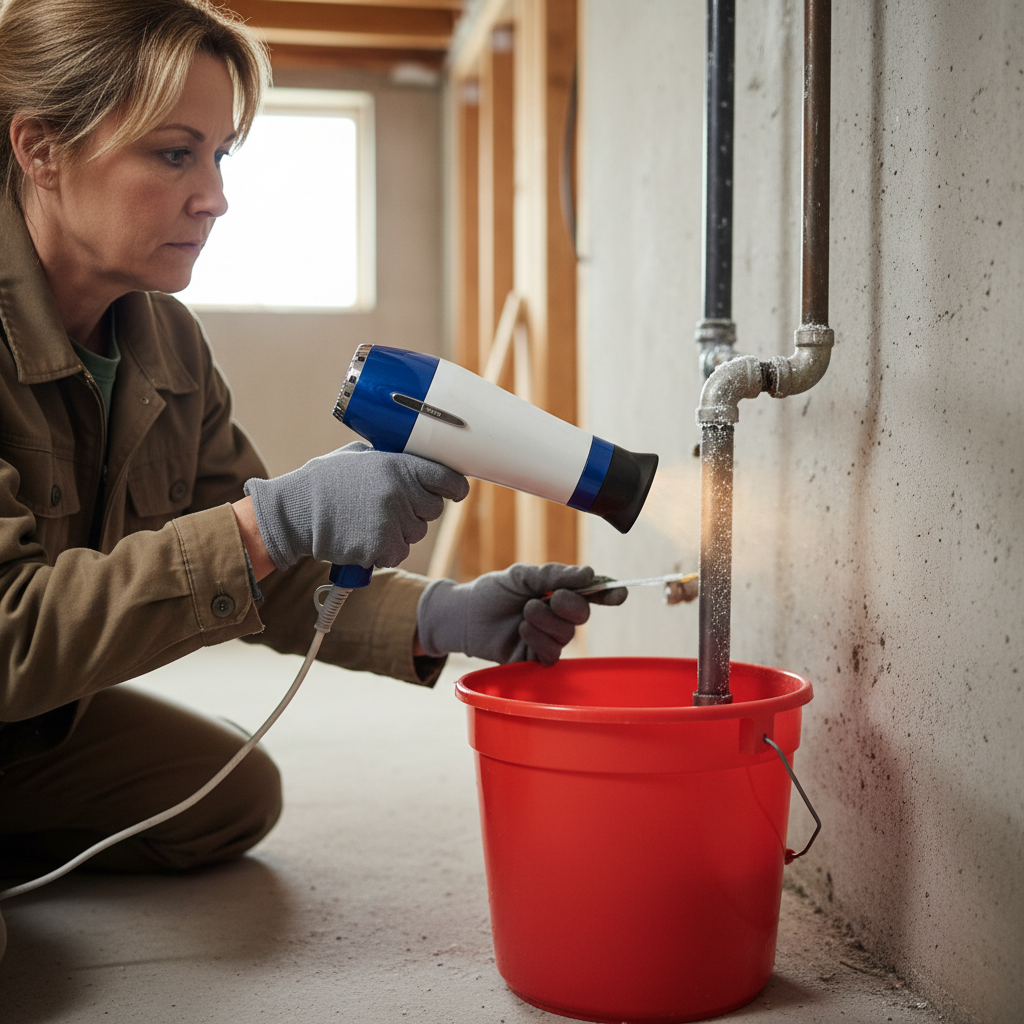 Safety Note: Always wear appropriate protective gear, such as gloves, and ensure good ventilation when using heating tools. Never use an open flame to thaw pipes.