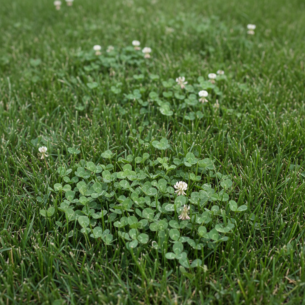 Clover (Trifolium repens, frequently white clover) is a perennial broadleaf weed that spreads aggressively via stolons (above-ground creeping stems) and seeds. Unlike most turfgrasses, clover is a legume, meaning it has a symbiotic relationship with nitrogen-fixing bacteria in its root nodules. This allows clover to essentially produce its own nitrogen, giving it a significant competitive advantage in nitrogen-poor soils where grass struggles. This nitrogen production is why clover often appears vibrant and green even when your lawn is looking stressed.