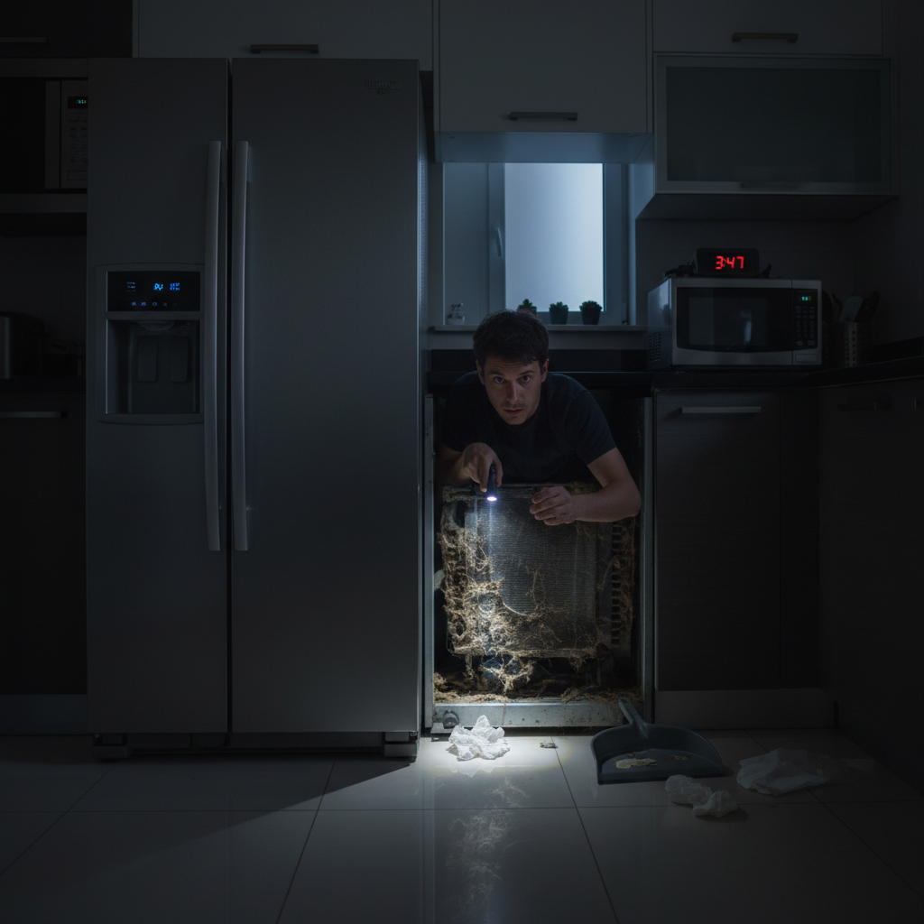 The Condenser Coils & Fan: The hot, high-pressure gas from the compressor flows into the condenser coils (typically on the back or underneath). Here, a condenser fan blows ambient kitchen air across the coils. This process removes heat from the refrigerant, allowing it to cool down and condense into a high-pressure liquid. If these coils are caked in dust and pet hair, the fan can't cool the refrigerant effectively. This forces the compressor to work much harder and longer, causing a loud buzzing or humming sound.