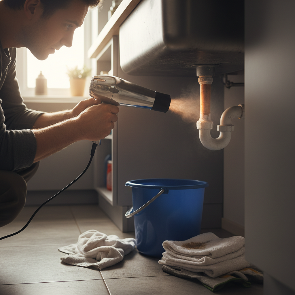 To safely thaw a frozen pipe, you must first identify the frozen section and immediately shut off your home's main water supply. Open any faucets connected to the frozen pipe to allow melting water to escape and relieve pressure. Apply gentle, indirect heat using tools like a hairdryer, a heat gun on its lowest setting, or towels soaked in hot water. Always start applying heat from the faucet side of the blockage and slowly work your way back along the pipe. Avoid using open flames, blowtorches, or electric heating pads directly on pipes, as these methods can cause severe damage, create steam explosions, or ignite nearby materials. If you can't locate the freeze or the pipe is already leaking, call a licensed plumber.