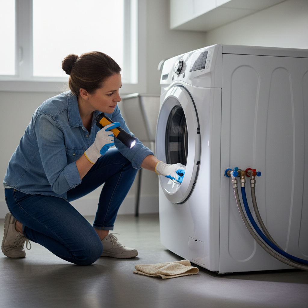 To find the source of a washer leak, first unplug the machine and turn off the water. Then, systematically check fill hoses for tightness and damage, inspect the drain hose for clogs or poor seating, clean the drain pump filter, and look for internal hose issues by tilting the machine. Run a short cycle watching for drips.