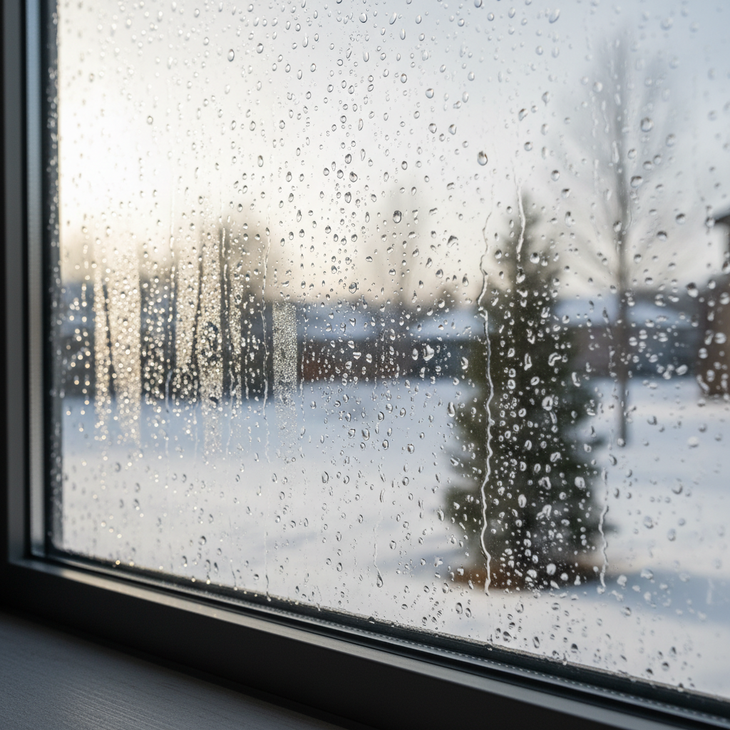 - Lower Your Humidifier — If you have a whole-house humidifier attached to your furnace or a portable unit, this is your first and easiest adjustment. Many people over-humidify their homes in winter to combat dry air. While well-intentioned, this is the most common cause of window condensation. Turn the setting down and monitor your hygrometer over the next day to see the impact. `
